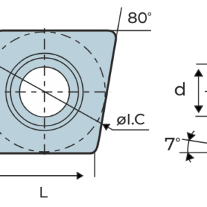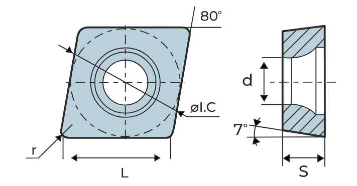 Отрицательный угол наклона, класс M, ромбическая вставка 80 градусов, для средней скорости резки.